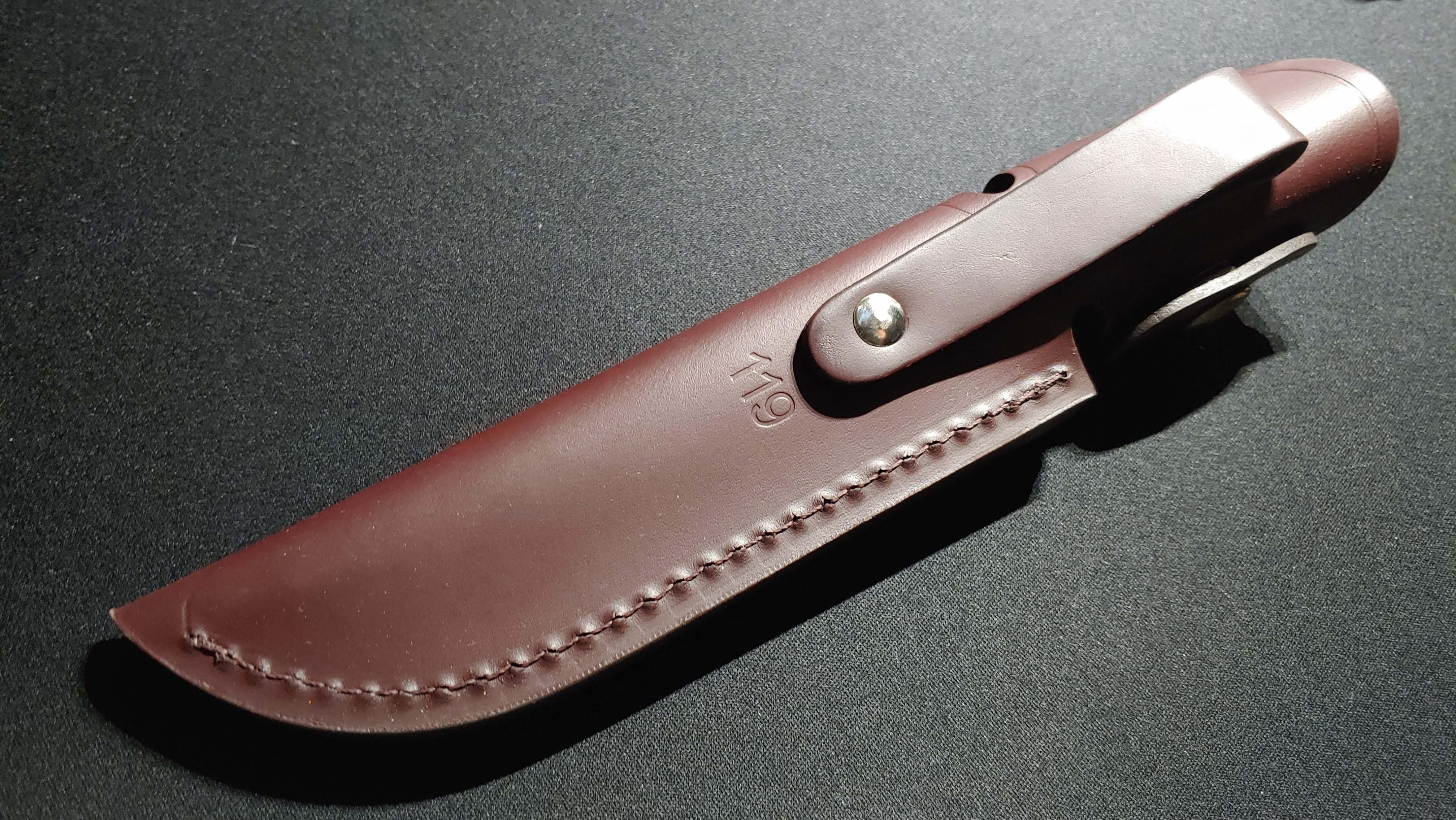 이 알레르기 반응 때문에 사용을 꺼리는 제작자도 있다고 한다119 모델의 나이프 날 종류는 클립 포인트이다