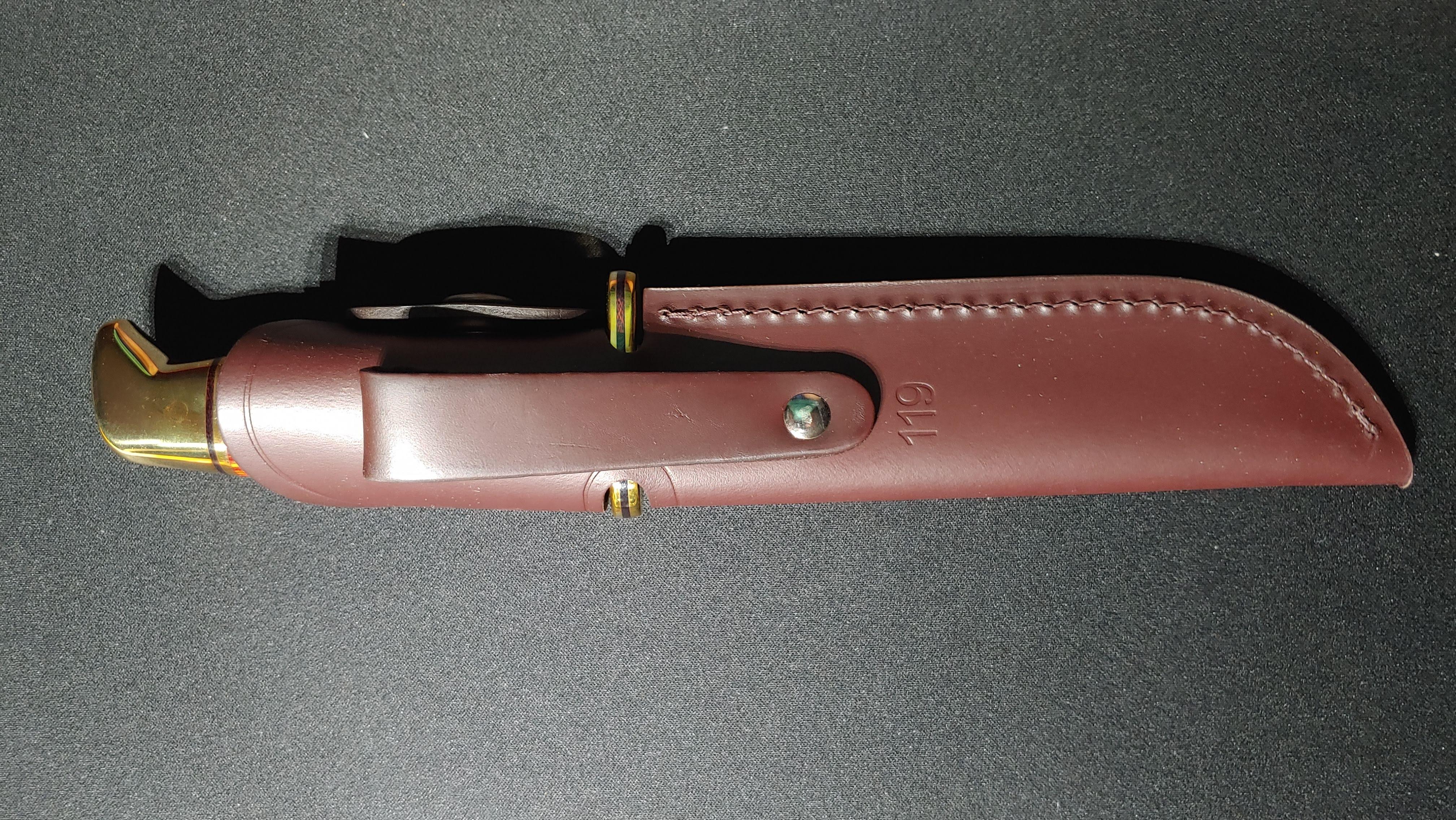 가죽으로 만들어진 칼집 또한 좋은 품질과 디자인으로 나이프의 멋을 더해주고 안전한 사용을 돕는다