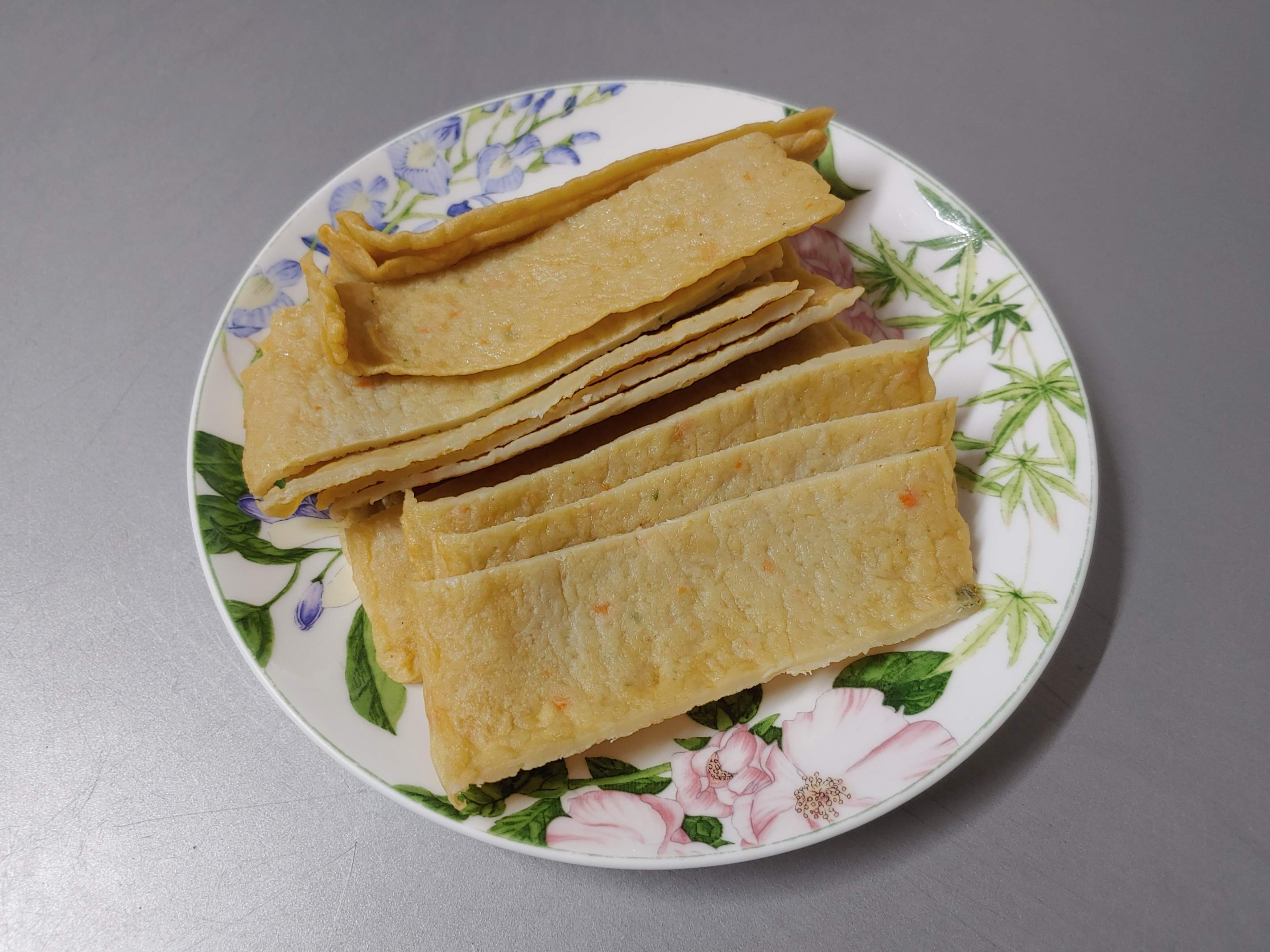 2. 넓적한 어묵을 먹기 좋게 잘라줍니다